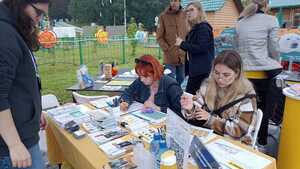 Сотрудники АНО «Дом финансового просвещения» Софья Дюльдина и Алёна Овчинникова провели для посетителей финансовые тесты, посвящённые основам цифровой грамотности. Гости мероприятия разгадывали кроссворды, ребусы и анаграммы с зашифрованными экономическими терминами, собирали маршрут безопасности при столкновении с телефонными мошенниками. Для самых юных участников были подготовлены головоломки и раскраски на финансовую тематику.