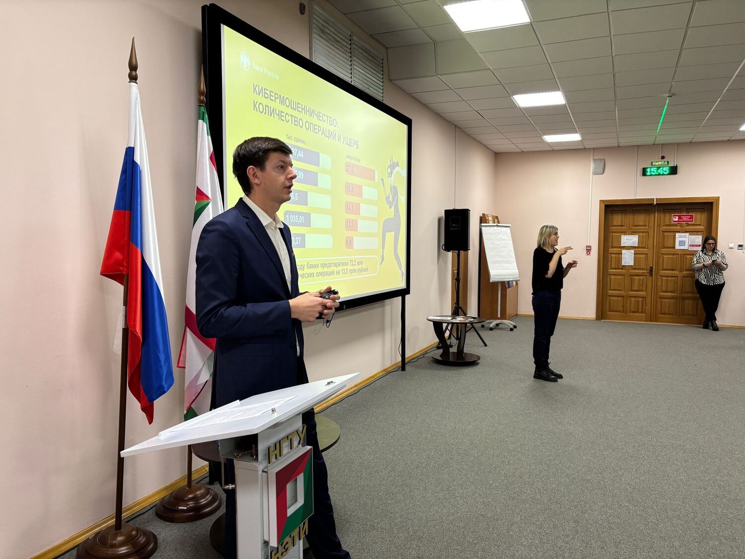 Спикерами мероприятия выступили представители Главного управления МВД России по Новосибирской области и Сибирского ГУ Банка России. Они рассказали о том, кто такие дропы и чем они занимаются, о потенциальной ответственности за участие в преступном деянии, рассмотрели наиболее распространённые схемы вовлечения молодёжи в незаконную финансовую деятельность и места вербовки. Студенты узнали о том, как избежать ловушек злоумышленников и куда обращаться, если предлагают стать дропом. В завершении лекции всем участникам вручили брошюры по теме дропперства и телефонного мошенничества, подготовленные Банком России и ГУ МВД России по НСО.